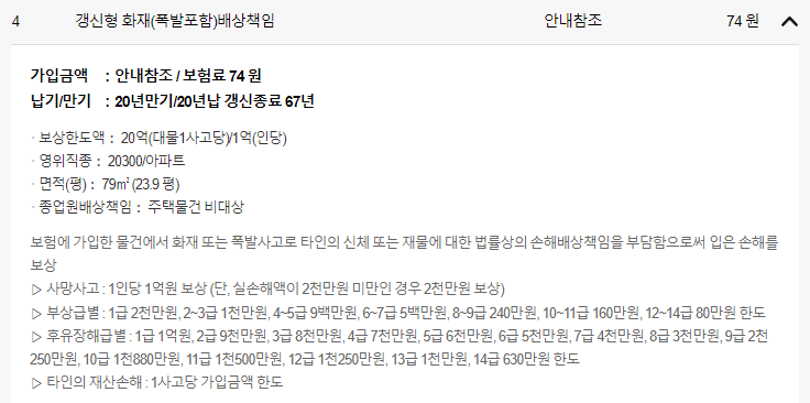 건물화재 2억화 재배상 책임 20억 기타 누수와 관련된 임대인 배상책임 1억급 배수시설 특약 500만원 화재보험과 누수보험 2가지를 모두 준비하는데 월 1만원으로 가입이 가능합니다.생각보다 보험료가 저렴하죠?임대주택의 경우 제가 직접 거주하지 않기 때문에 누수 등 위험이 커질 수밖에 없습니다.월 1만원으로 구비해두면 큰 피해부터 보장받을 수 있습니다.가입 시 알아야 할 내용임대인 배상 책임 보험을 판매하면서 주로 문의 내용을 정리해 보았습니다.임대인배상책임보험은 타인의 재산과 관련된 손해를 대신 보장하는 특약입니다.현재 이 플랜은 건축연도 상관없이 가입이 가능합니다.사진 첨부나 서류 첨부도 없으니 걱정하지 않으셔도 됩니다.아랫집 누수 발생으로 공사비용 발생 시 고객부담금은 50만원입니다.이것은 현재 임대인 배상 책임 보험 업계 공통으로 적용되고 있습니다.인수 조건이 좋다고 해서 자기부담금이 높게 설정되어 있지는 않은 점 참고하시기 바랍니다.임대주택의 경우 매물로 나오는 경우가 많습니다.이 임대인 배상책임보험의 경우 새 주택 구입 시 주소를 옮겨 현재 기준으로 유지하는 것도 가능합니다.당연히 그런내용 없으면 해지해주세요^^임대주택의 경우 매물로 나오는 경우가 많습니다.이 임대인 배상책임보험의 경우 새 주택 구입 시 주소를 옮겨 현재 기준으로 유지하는 것도 가능합니다.당연히 그런내용 없으면 해지해주세요^^금융으로 30년 후를 준비하자 보험. 최저가는 존재합니다. 이것저것 알아보세요 open.kakao.com금융으로 30년 후를 준비하자 보험. 최저가는 존재합니다. 이것저것 알아보세요 open.kakao.com궁금하실 때 네이버톡 해주세요!오늘은 임대인 배상 책임 보험 구축도 가입한다는 내용으로 안내해 드렸습니다.구축의 경우 도움을 받았다면 궁금한 점이 많습니다.부담 없는 보험료로 큰 위험에 대한 대비를 해두세요.